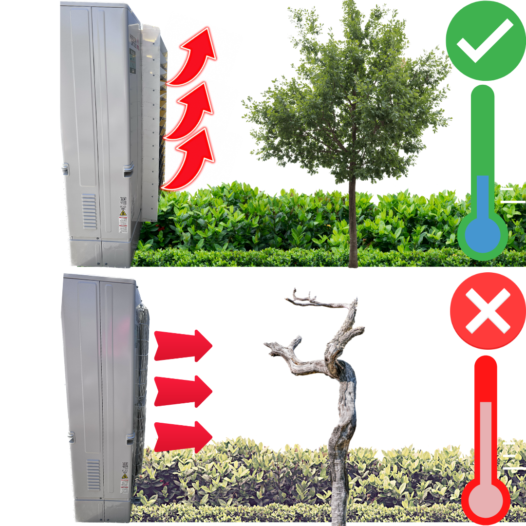 Your air conditioner will not work if there is not enough airflow around the outdoor unit. A fence or a wall within 1.5m of the front of your air conditioning outdoor unit will cause serious performance issues, especially during High and Low temperatures (when you need it the most!).